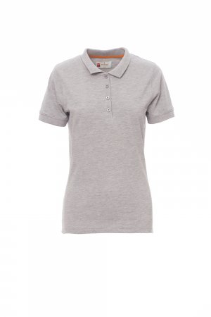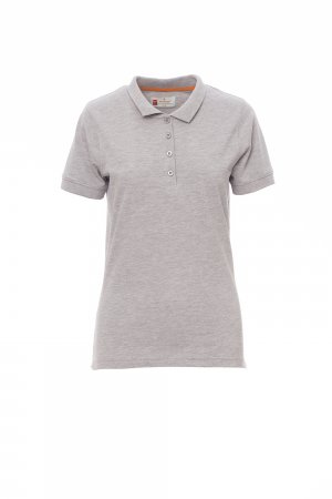 Women’s short-sleeved fitted polo shirt with 4, matching, mother-of-pearl effect buttons, rib collar and sleeve edging, side vents, concealed collar stitching with contrasting tape, stretch seams, side reinforcement tape, inner neck tape