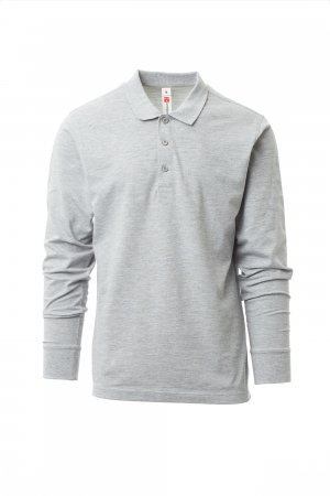 Men’s long-sleeved polo shirt with three mother-of-pearl effect buttons, ribbed collar and cuffs, side vents, concealed collar stitching with matching colour tape, stretch seams, reinforcement tape on the sides.