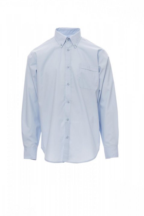 Men’s fine weave combed shirt, slightly tailored, button-down collar, rounded cuff with 2 buttons and button hole, stitched placket with mother-of-pearl effect buttons, one breast pocket. With yoke.