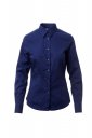 Women's shirt, slim fit. Shaped Italian collar with closed front band tie space. Box pleat folded inside and visible buttoning. Mother-of-pearl effect buttons. Smooth yoke on the back. Tuck pleats on the front and back. Fabric gusset on the hips. Rounded cuffs with 2 buttons.