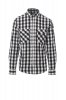 Long-sleeved plaid shirt with mother-of-pearl effect buttons, English button-down collar, yoke on back, two chest pockets with flap with button closure and pen holder.