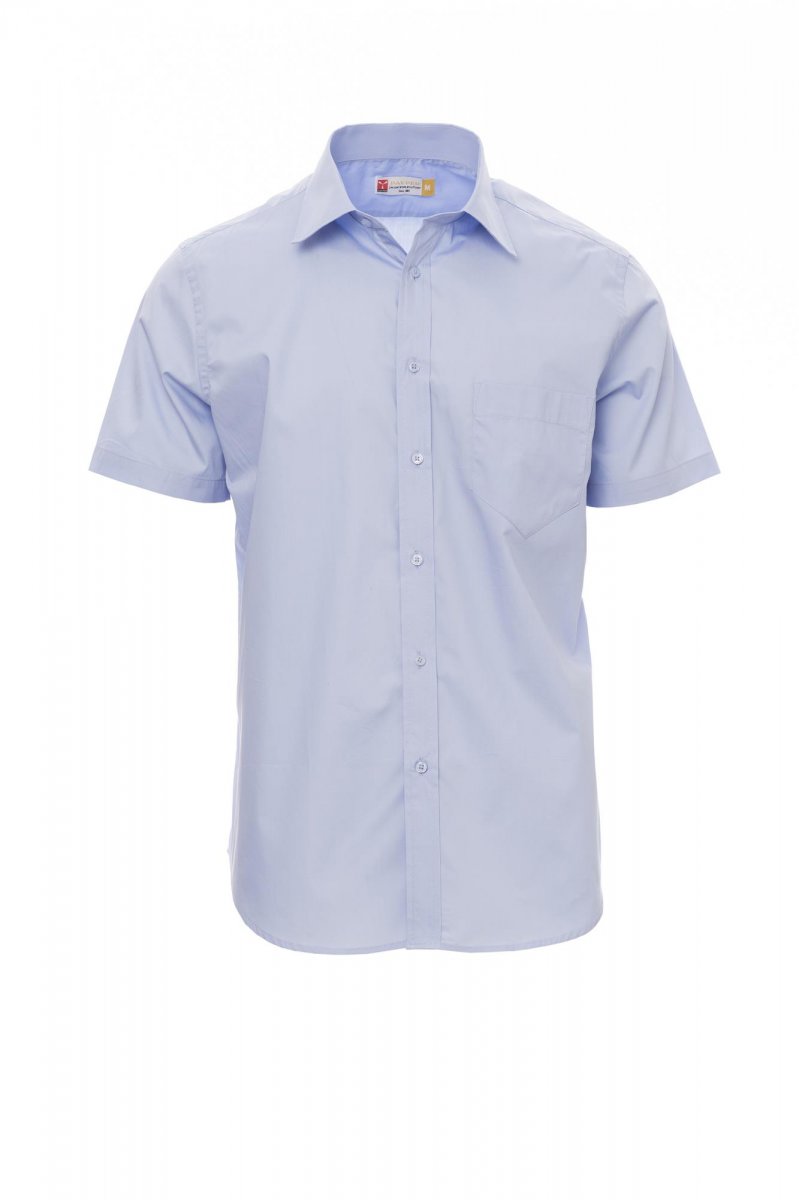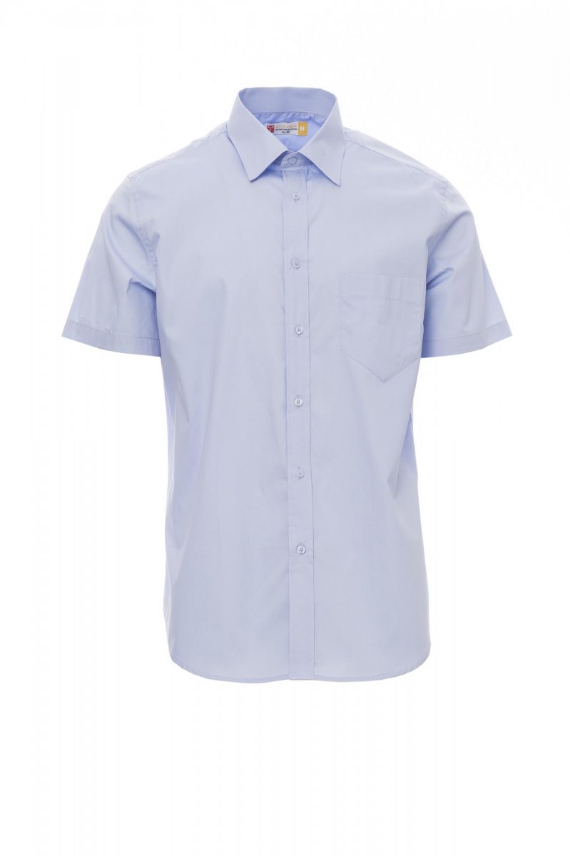 Men’s fine cotton weave combed short-sleeved shirt, slightly tailored, Italian-style collar, stitched placket with matching button, one breast pocket on the heart side. With yoke and darts mid-back. Easy-care fabric.