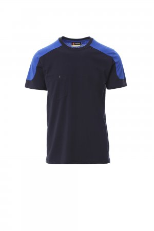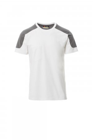 Two-tone t-shirt, breast pocket with pen holder, concealed collar stitching and side reinforced tape.