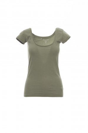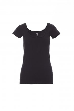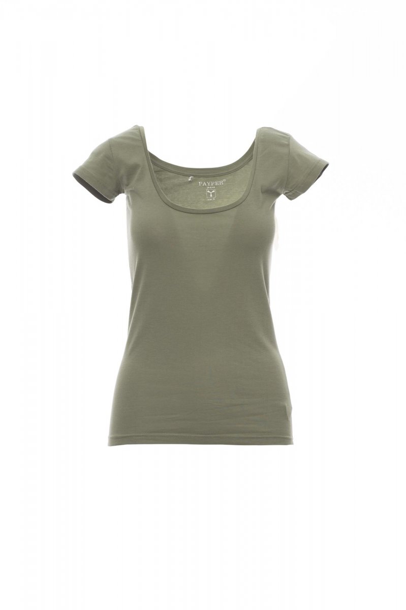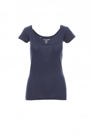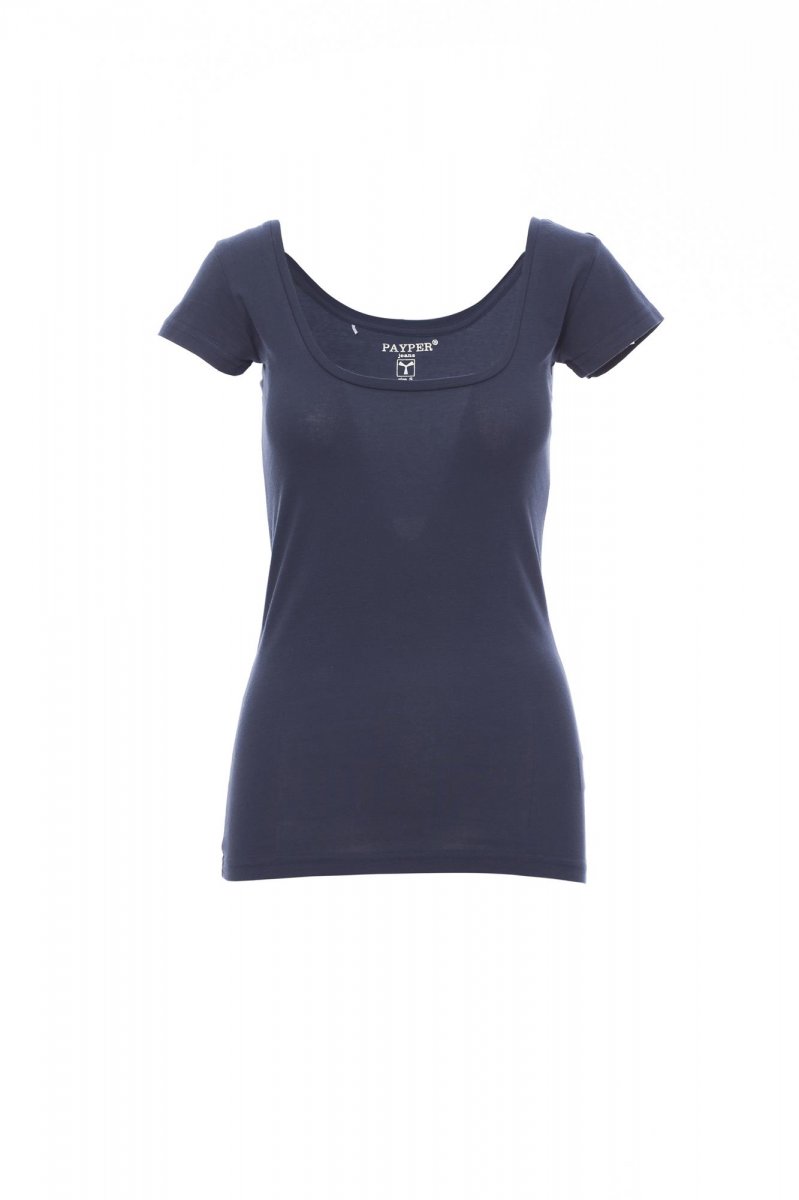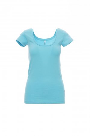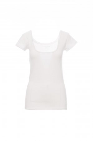 Women’s short-sleeved square neck fitted t-shirt, with 1 cm neckband, side seams.