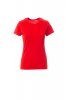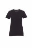 Women’s short-sleeved fitted crew neck t-shirt, with 1.5 cm spandex mix rib neckband with top stitching on the front, shoulder-to-shoulder reinforcement, stretch seams, side seams. No label