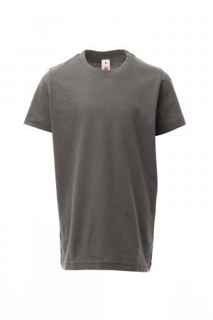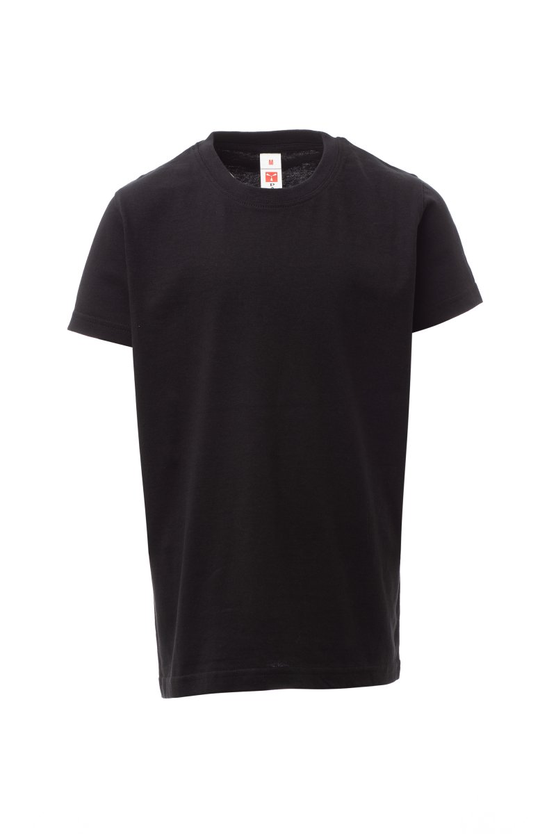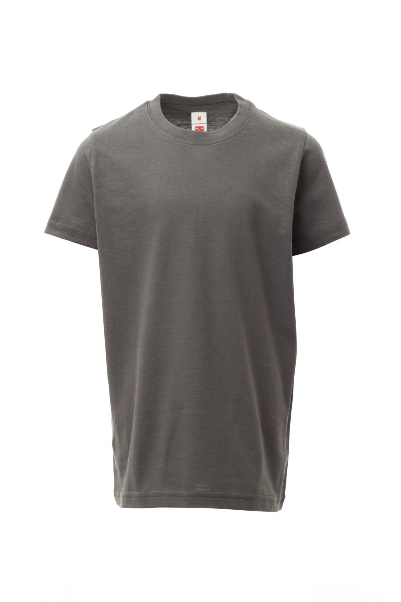 Children’s short-sleeved crew neck t-shirt, with 1.5 cm spandex mix rib neckband with top stitching on the front, tubular structure.