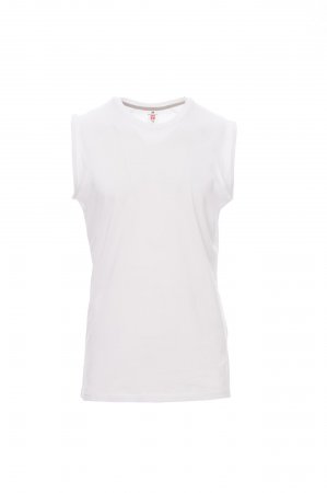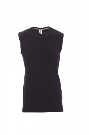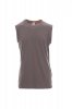 Men’s vest with scoop neck, raglan sleeves, 1.5 cm spandex mix rib neckband with top stitching on the front, contrasting shoulder-to-shoulder reinforcement tape visible on the inside collar, stretch seams.