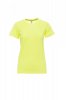 Women’s short-sleeved fitted crew neck t-shirt, with 1.5 cm spandex mix rib neckband with top stitching on the front, contrasting shoulder-to-shoulder reinforcement tape visible on the inside collar, stretch seams, side seams