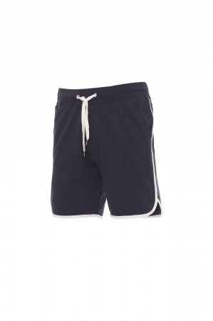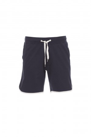 Men’s sweatpant Bermuda shorts with stretch waist and drawstring, fly with zip, two front pockets and contrasting trim.