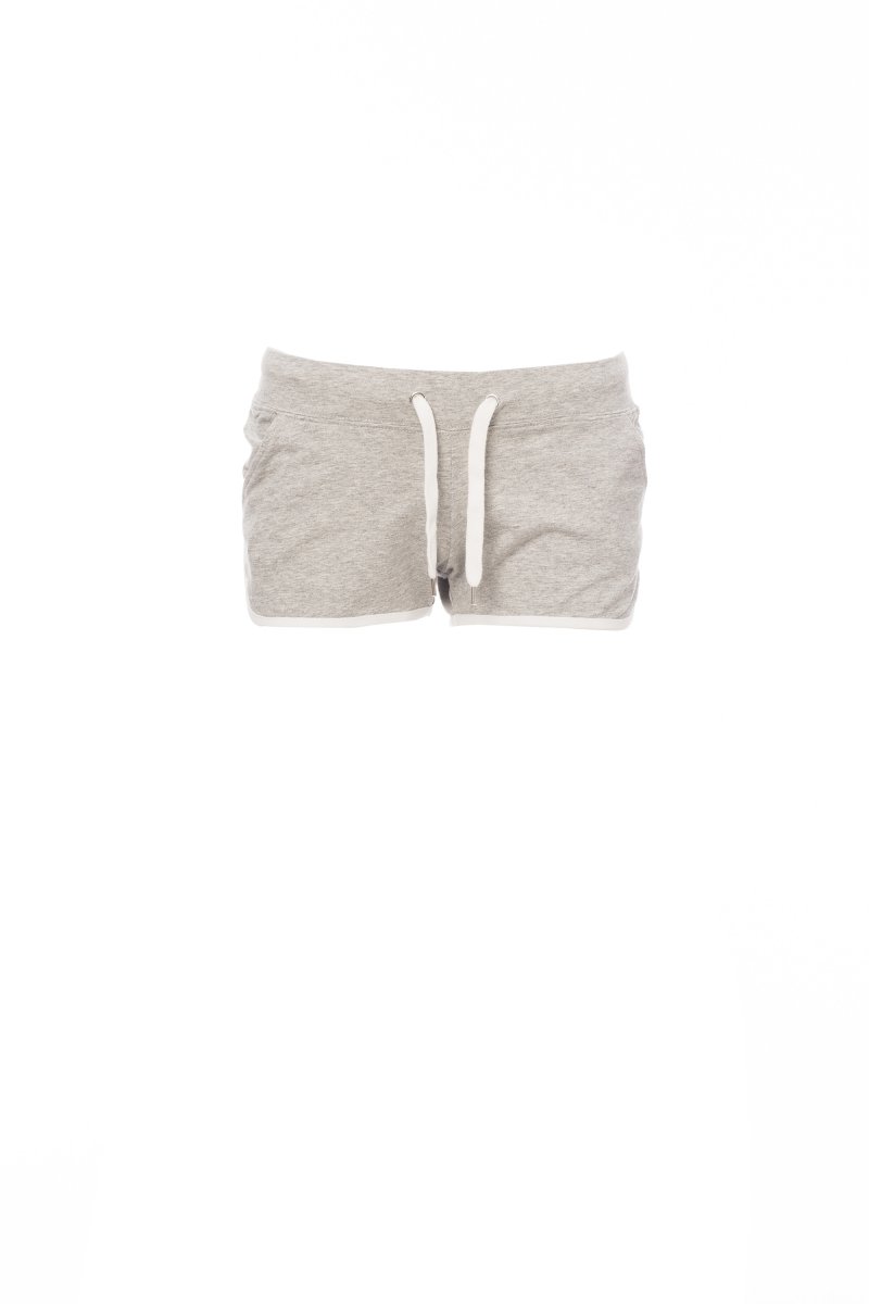 Women’s sweatpant Bermuda shorts with stretch waist and drawstring, two front pockets and contrasting trim.