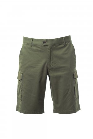 Men's Bermuda shorts, zip closure and asymmetric button placket with 2 buttons, 2 French pockets, 2 side pockets with flap and snap button, tailored belt loops at the waist, 2 back pockets with flap and snap button.