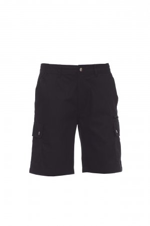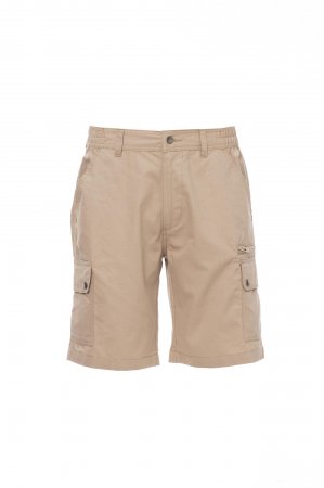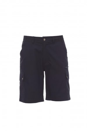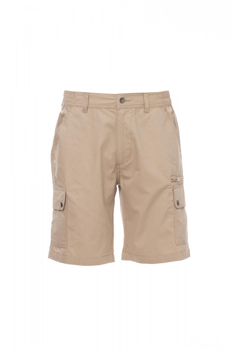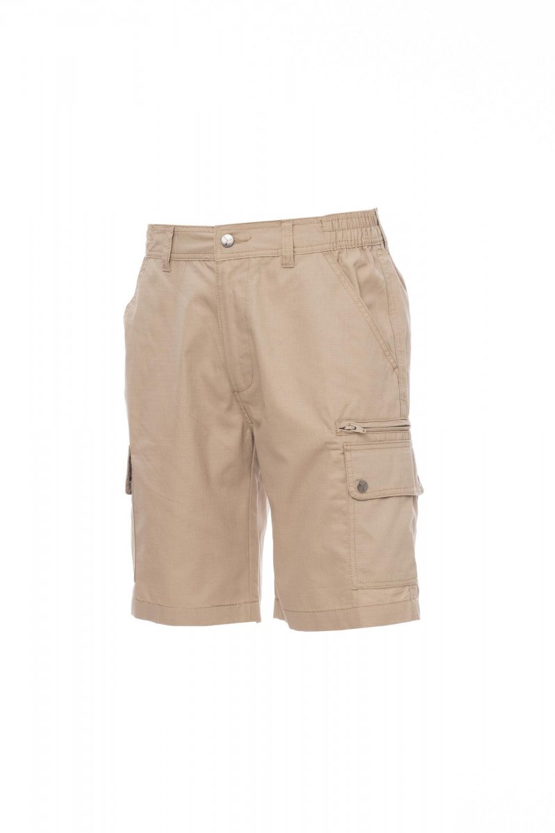 Men’s Bermuda shorts with side elastic and waist belt loops, zip fastening with metal button, two classic front pockets, two large side pockets with flaps and snap fasteners, one left zip pocket, one foldaway tape measure pocket on the right, two slit back pockets with button and buttonhole.