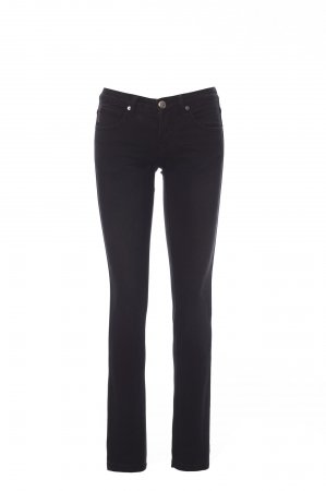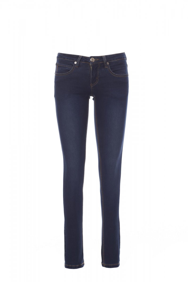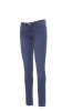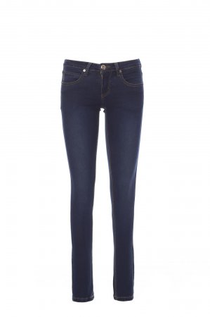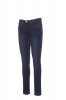 Women’s jeans with five pockets, metal zip fastening with button, belt loops at waist, stone wash, worn, faded effect, contrasting heavy duty stitching, double seams on inside leg, straight leg, studs and patches in real leather. Fabric weight: 12 oz/yd².