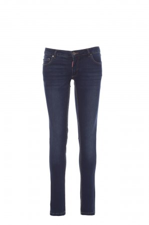 Women’s jeans with five pockets, metal zip and button closure, belt loops at waist, one foldaway tape measure pocket, one pen and cutter holder, stone-washed treatment, worn and faded effect. Straight leg, contrasting heavy duty stitching, triple seams inside leg. Fabric weight: 10.50 oz/yd².