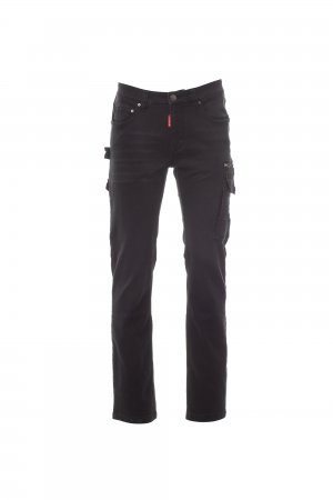 Men's multi-pocket trousers, five-pocket jeans cut, metal zip and button fastening, belt loops, 1 LOCK SYSTEM side pocket with internal reinforcement, 1 zip pocket, 1 tape measure pocket, 1 smartphone pocket, 1 hammer holder, 1 pen and cutter pocket, stone-washed treatment with worn and faded effect. Straight leg, contrasting heavy duty stitching, triple seams inside leg. Fabric weight: 10.50oz/yd².