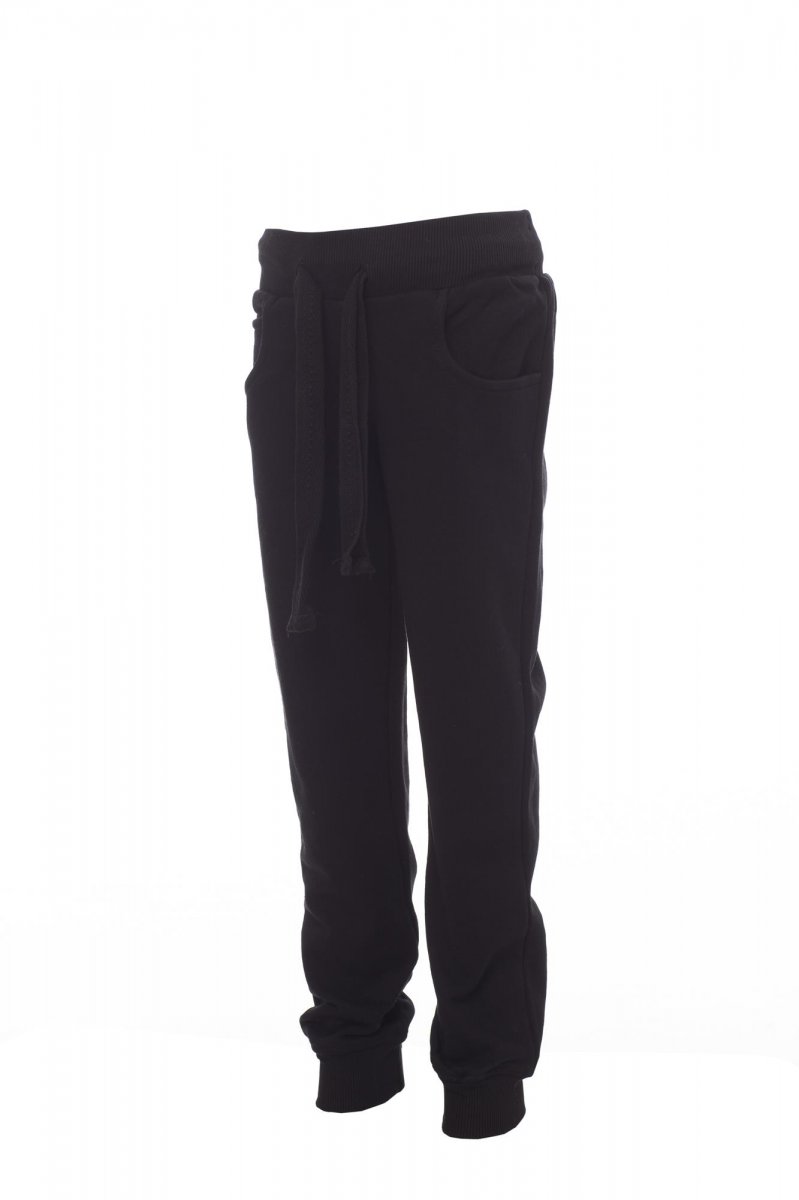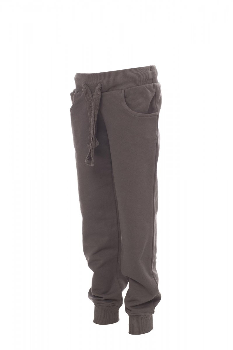 Children’s all-season sweatpants with stretch rib at the waist and bottom of the leg, drawstring, two front pockets and a small pocket, zip fly fastening