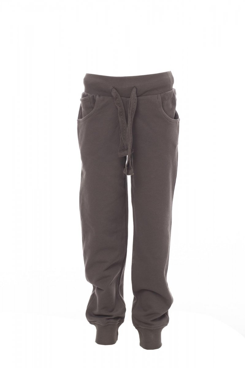 Children’s all-season sweatpants with stretch rib at the waist and bottom of the leg, drawstring, two front pockets and a small pocket, zip fly fastening