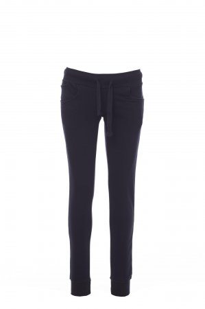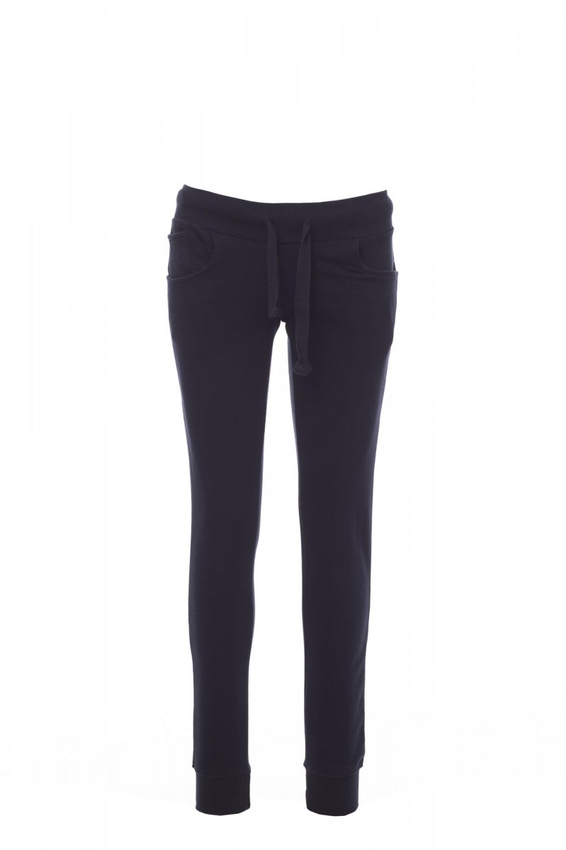 All-season sweatpants with stretch rib at the waist and bottom of the leg, drawstring, two front pockets and a small pocket.