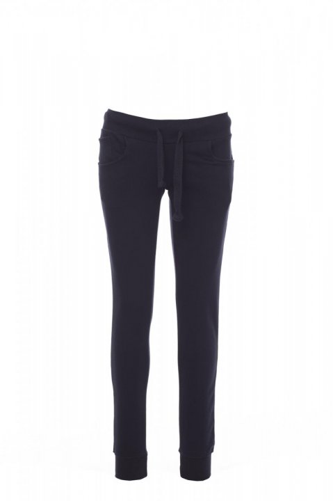 All-season sweatpants with stretch rib at the waist and bottom of the leg, drawstring, two front pockets and a small pocket.