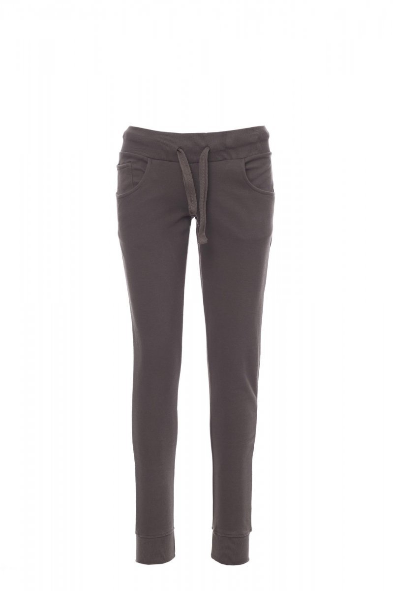 All-season sweatpants with stretch rib at the waist and bottom of the leg, drawstring, two front pockets and a small pocket.