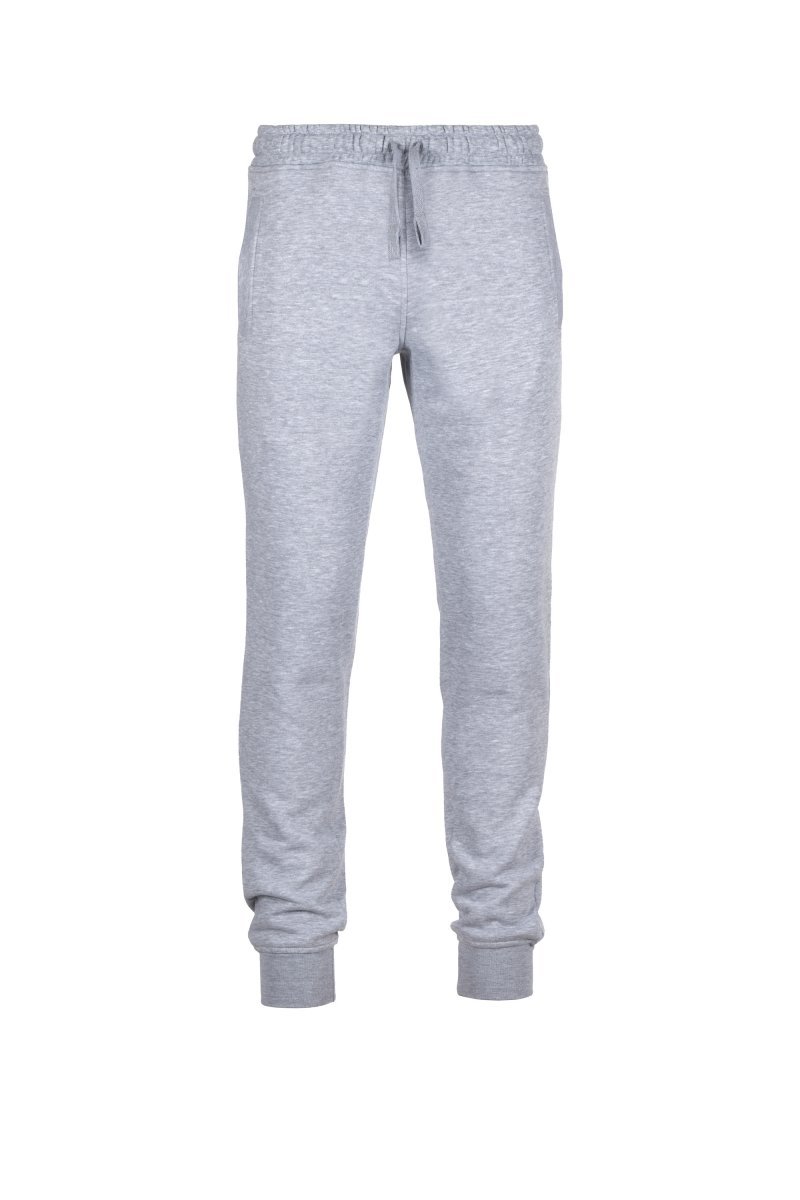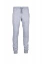 Men's fleece sweatpants, elasticated waist with drawstring and matching cord. Two front welt pockets with ribbing and a small pocket on the back. Ribbing on the bottom of the leg.