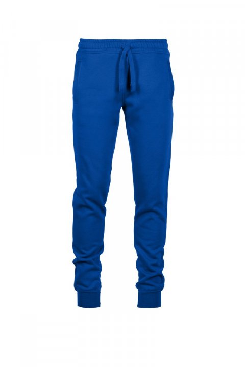 Men's fleece sweatpants, elasticated waist with drawstring and matching cord. Two front welt pockets with ribbing and a small pocket on the back. Ribbing on the bottom of the leg.