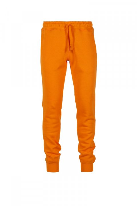 Men's fleece sweatpants, elasticated waist with drawstring and matching cord. Two front welt pockets with ribbing and a small pocket on the back. Ribbing on the bottom of the leg.