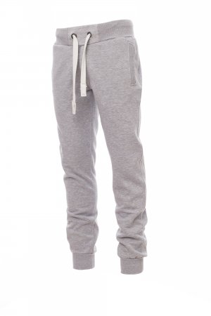 Men’s sweatpants with stretch rib at the waist and bottom of the legs, zip fly fastening, white drawstring with contrasting stitching and metal rings, two front pockets with rib and a back pocket, with zip fastening and reinforced seams.
