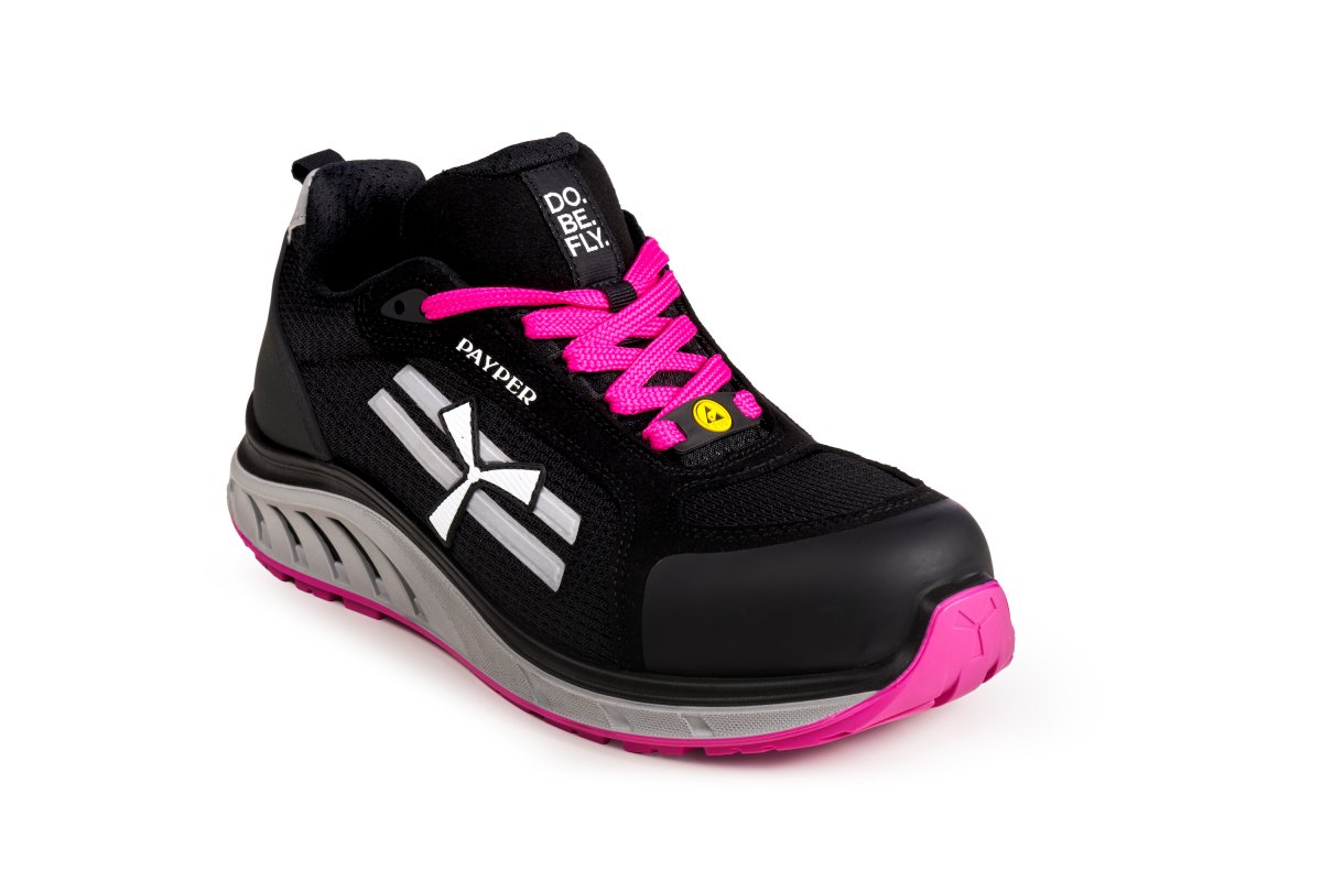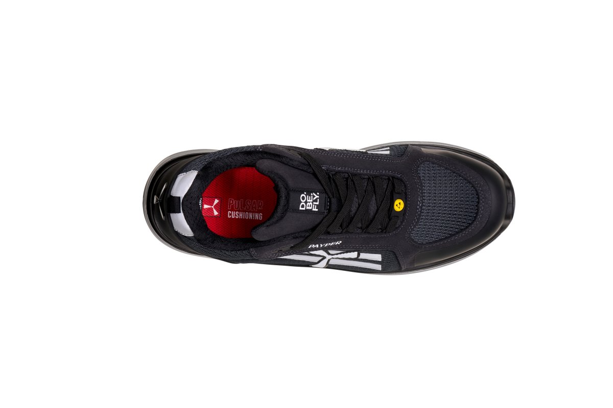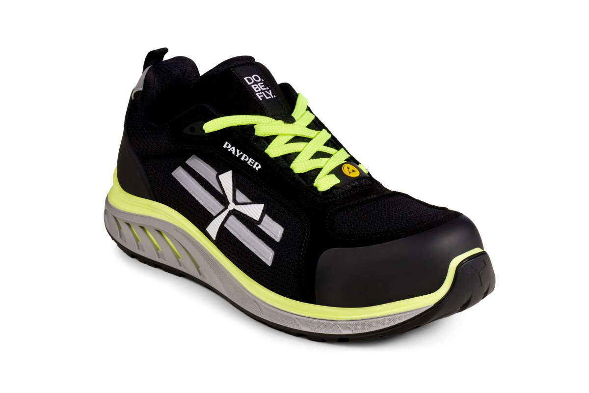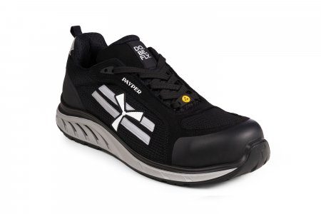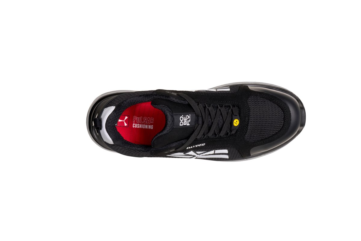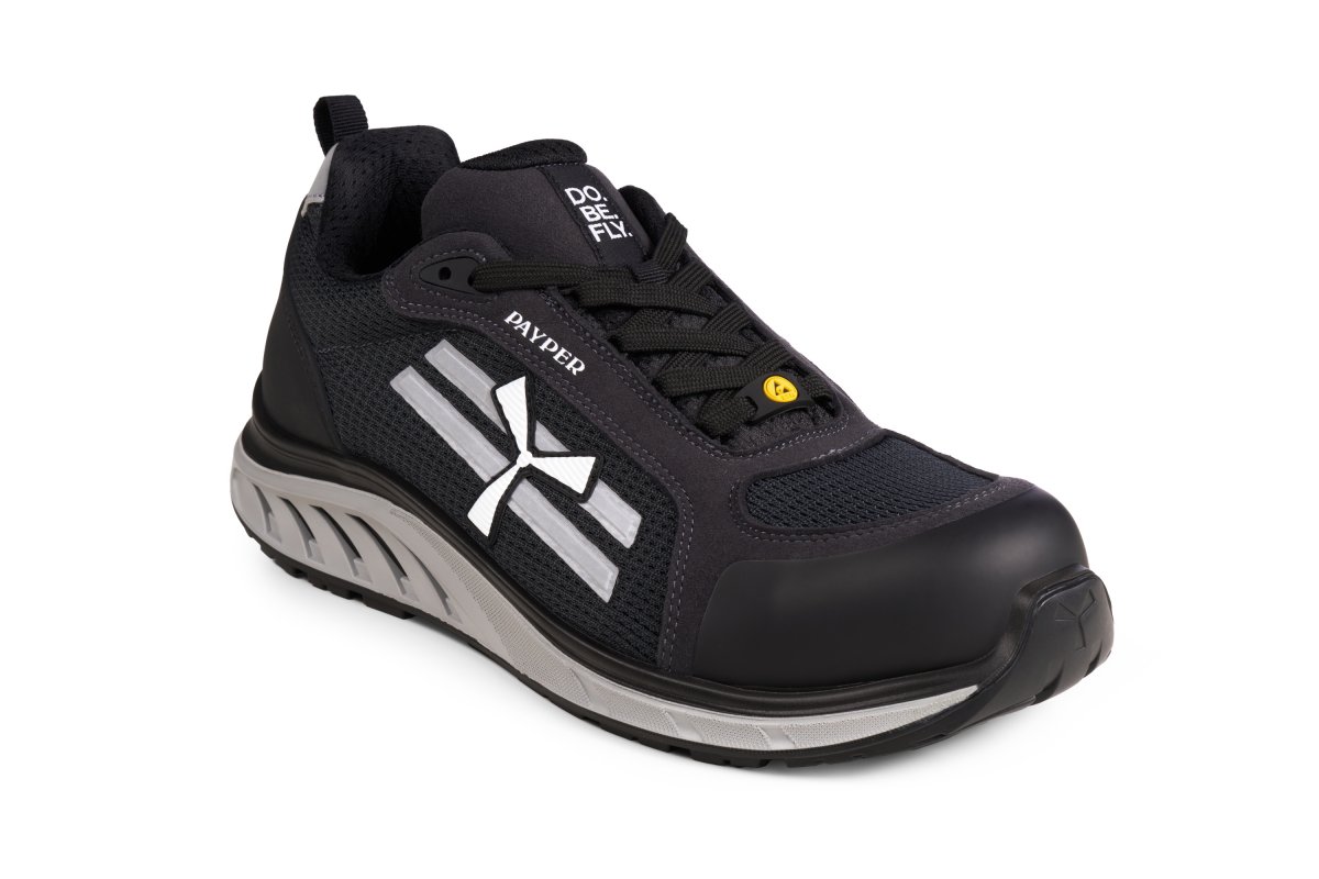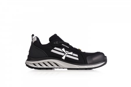 Safety shoes with upper in open-weave mesh fabric, ultra-breathable. Breathable and abrasion-resistant inner lining. Reinforced TPU heel guard and anti-abrasion protection at the toe. Lighter and more resistant fibreglass tip. Ultra-light anti-puncture plate. Removable Pulsar Cushioning insole in dual-density PU and open-cell system, ergonomic, antistatic and shock-absorbing. Midsole made with ultra-light dual-density PU mix. First midsole provides cushioning and long-lasting comfort, second midsole ensures stability and support. TPU tread, ultra-resistant to hydrolysis and wear. ESD safety footwear.