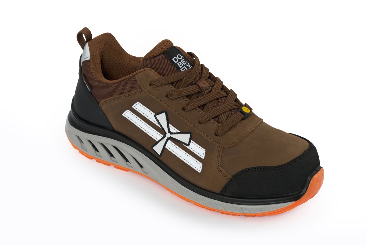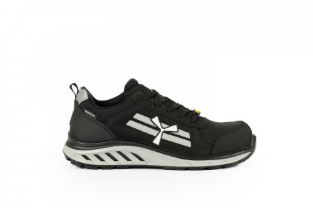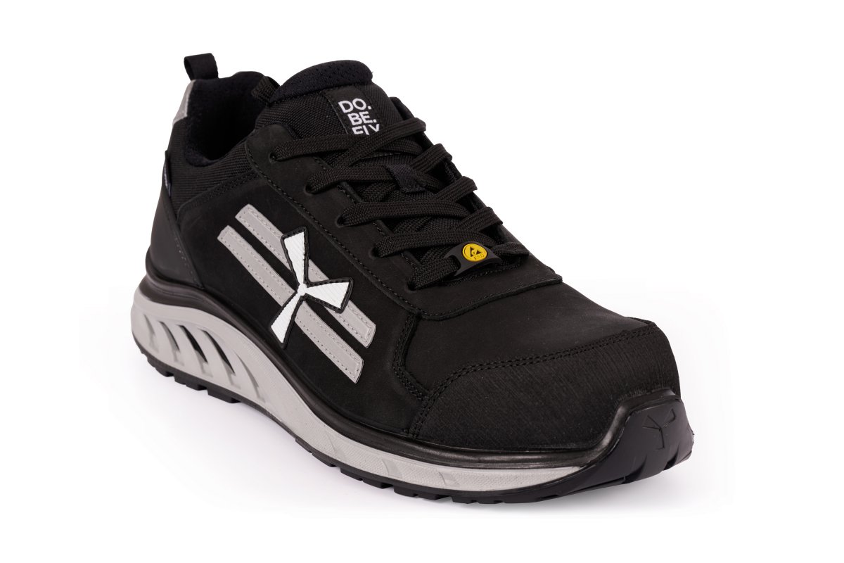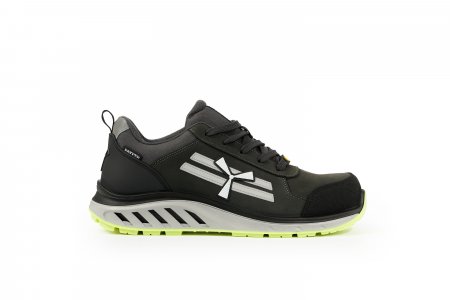 Safety shoe with nubuck leather upper. Breathable and abrasion-resistant inner lining. Reinforced TPU heel guard and anti-abrasion protection at the toe. Lighter and more resistant fibreglass tip. Ultra-light anti-puncture plate. Removable Pulsar Cushioning insole in dual-density PU and open-cell system, ergonomic, antistatic and shock-absorbing. Midsole made with ultra-light dual-density PU mix. First midsole for proper cushioning and long-lasting comfort. Second midsole for greater stability and proper support. TPU tread, ultra-resistant to hydrolysis and wear. ESD safety footwear.