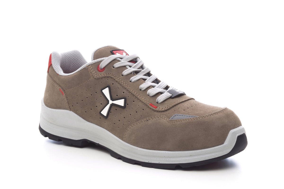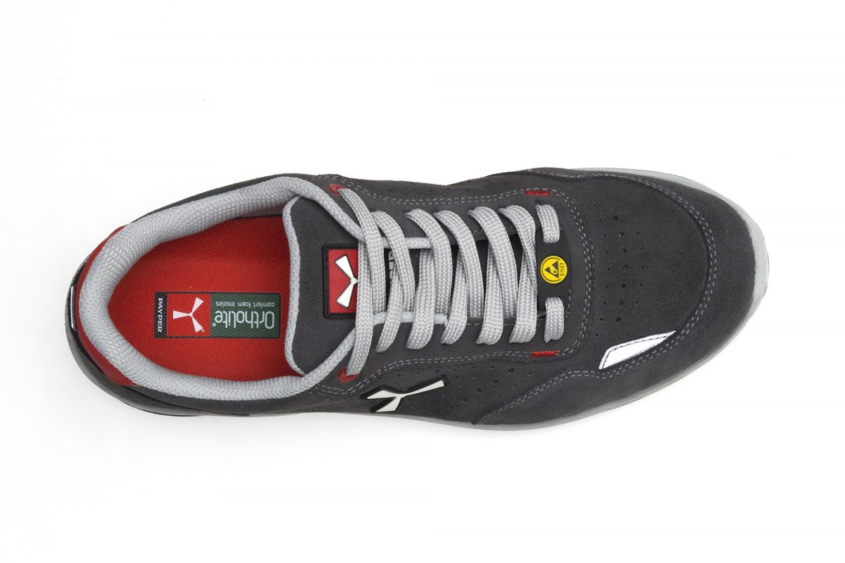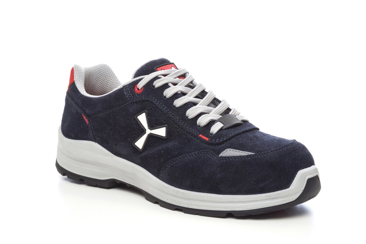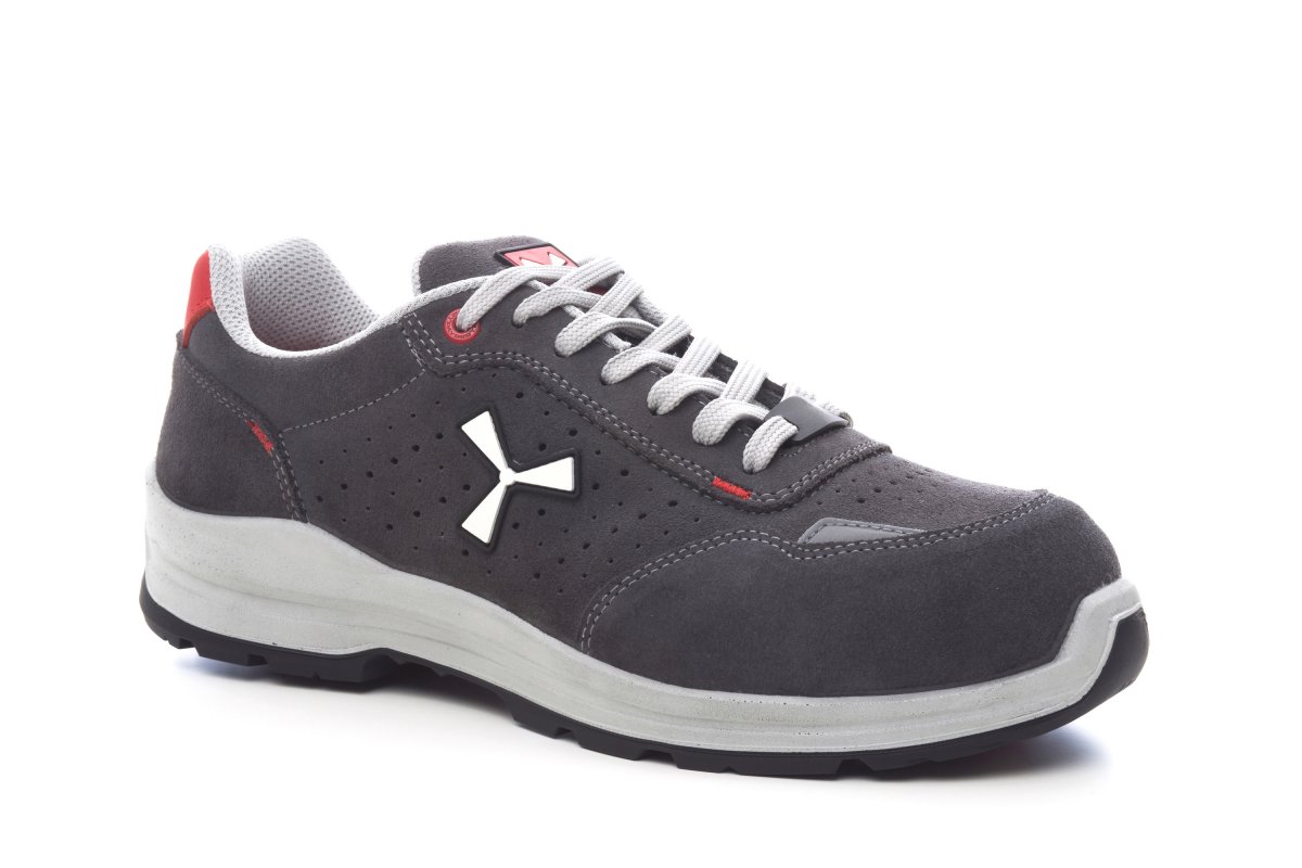 Men's low safety antistatic shoe, upper in water-repellent and breathable perforated split leather, inner lining (throughout the internal surface) breathable and resistant to abrasion, 1 + 1 metal-free eyelets and 6 + 6 reinforced lace holes, reflective inserts in the heel guard and outer side of the tip, die-cast aluminium tip, Ortholite X40 016 removable arch support, certified anti-puncture reinforced fabric insole, anti-torsion shank, horseshoe-shaped under-toe, ultra-light polyurethane mid-sole, high tenacity and balanced density polyether MASTER BALANCE cushioning, XTRAIL GRIP outsole in ESD TPU with heel and tip guard.
