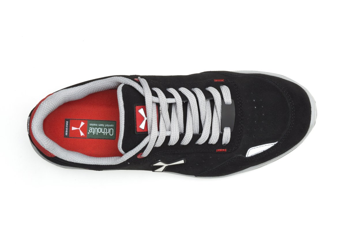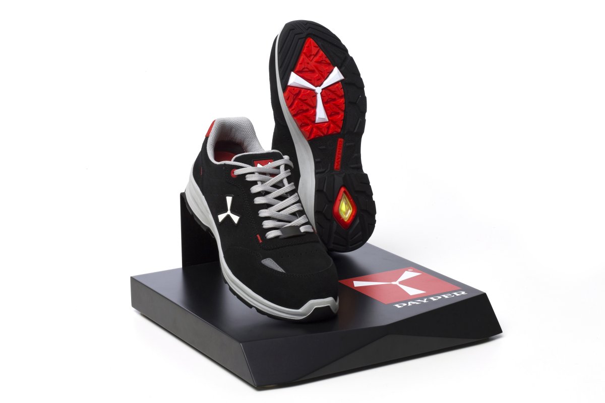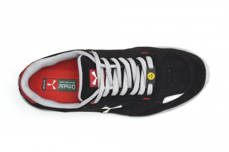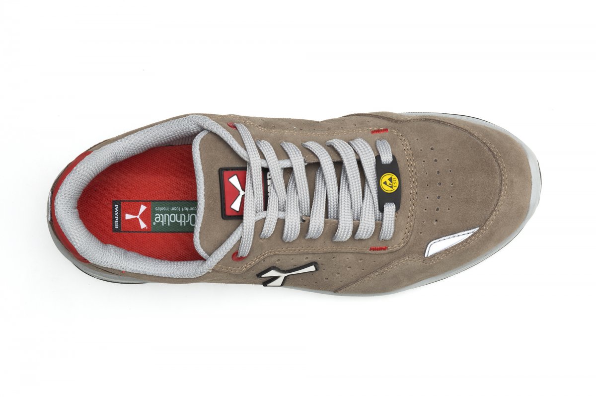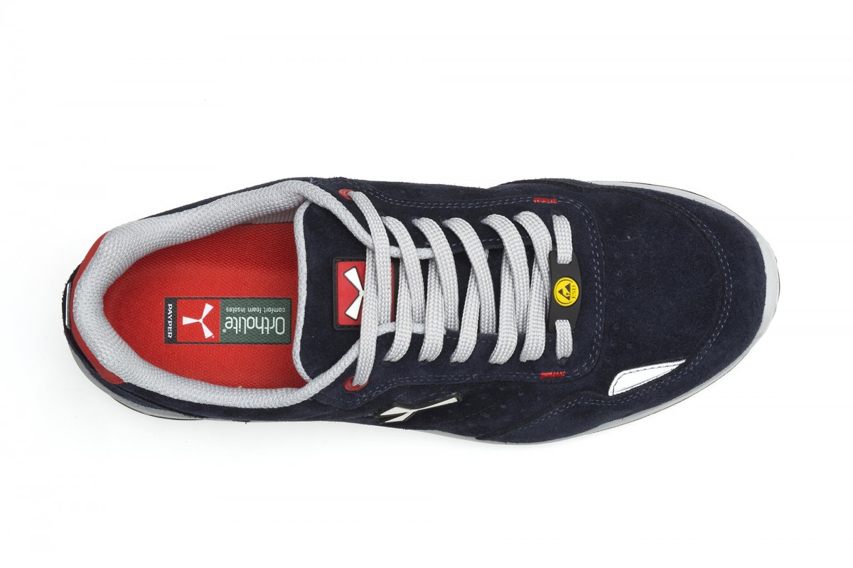 Men's low safety antistatic shoe, upper in water-repellent and breathable perforated split leather, inner lining (throughout the internal surface) breathable and resistant to abrasion, 1 + 1 metal-free eyelets and 6 + 6 reinforced lace holes, reflective inserts in the heel guard and outer side of the tip, die-cast aluminium tip, Ortholite X40 016 removable arch support, certified anti-puncture reinforced fabric insole, anti-torsion shank, horseshoe-shaped under-toe, ultra-light polyurethane mid-sole, high tenacity and balanced density polyether MASTER BALANCE cushioning, XTRAIL GRIP outsole in ESD TPU with heel and tip guard.