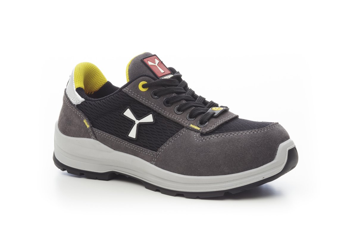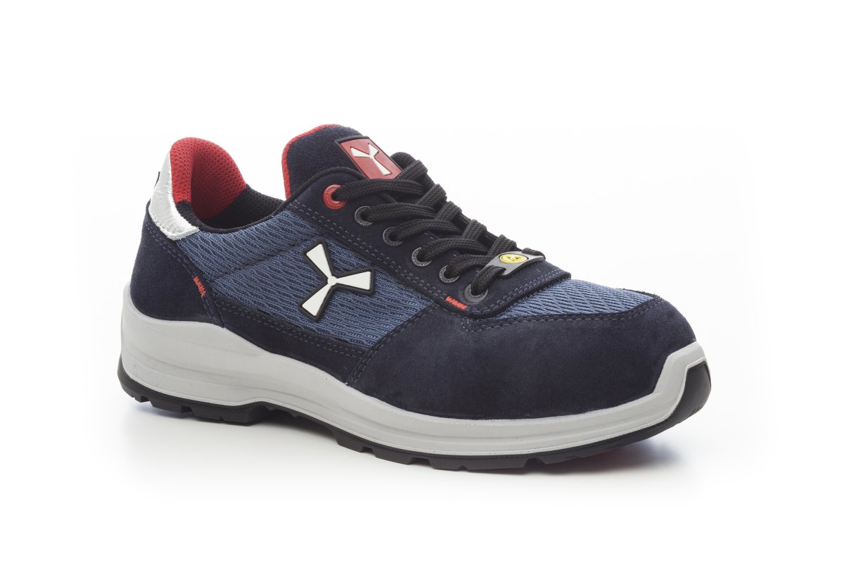 Women’s low safety antistatic shoe, upper in water-repellent split leather with inserts in breathable technical fabric, inner lining (throughout the internal surface), breathable and resistant to abrasion, 6 + 6 metal-free eyelets, reflective insert in the heel guard, die-cast aluminium tip, Ortholite X40 016 removable arch support, certified anti-puncture reinforced fabric insole, anti-torsion shank, horseshoe-shaped under-toe, ultra-light polyurethane mid-sole, high tenacity and balanced density PU polyether MASTER BALANCE cushioning, XTRAIL GRIP outsole in TPU with heel and tip guard