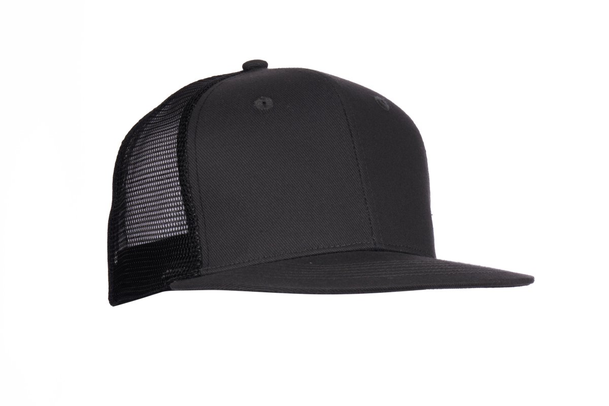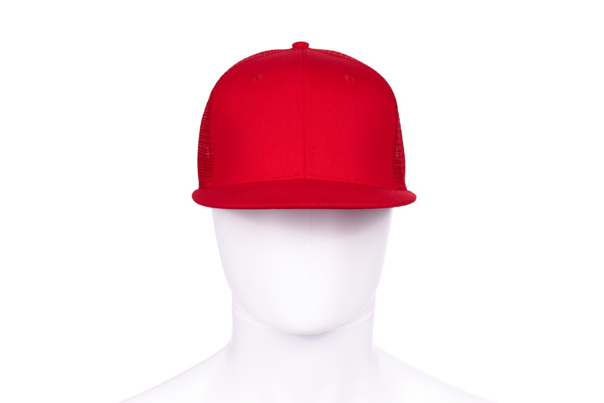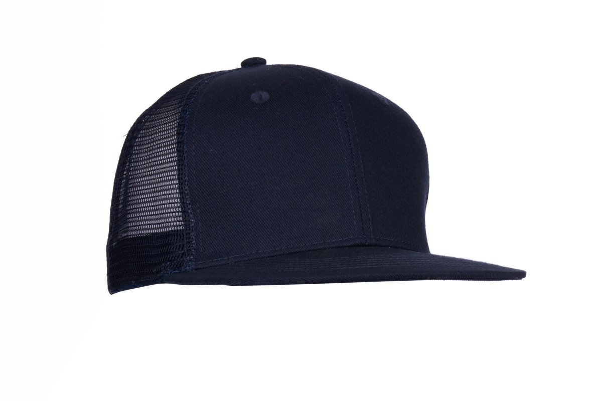 Unisex 6-panel cap in cotton twill and mesh on the side and back panels, for greater breathability. Flat visor, embroidered eyelets and adjustable closure with plastic buckle. The carton contains 2 25-piece display boxes, packed in polybags with 5 caps each, for a total of 50 pieces. Minimum saleable unit: 5 pieces (1 polybag).