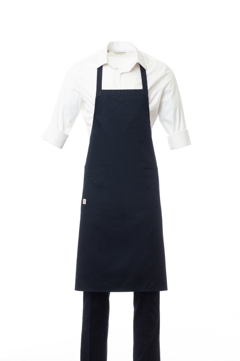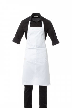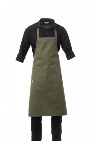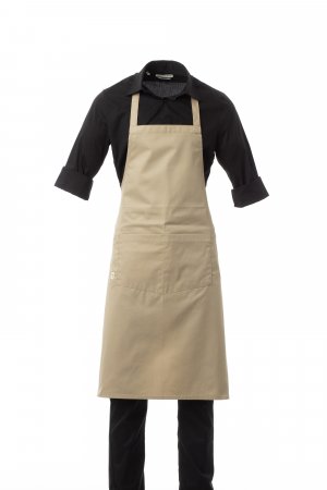 Unisex multipurpose apron with non-adjustable bib, made of polycotton fabric. Central pocket divided into 2 compartments, plus a practical small pocket for objects at the side. Measurements: 78x90cm.