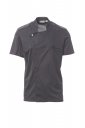 Men’s chef jacket with mandarin collar made of cotton twill and Lycra® T400®, with excellent elastic and breathable properties, and with comfortable mesh fabric on the back, sleeves and waist, to maximise breathability. Double-breasted closure with snap buttons, foldable flap that can be fastened to the chest with a visible button, creating the effect of a tailored lapel and an innovative V-neck. Short sleeves with hem.