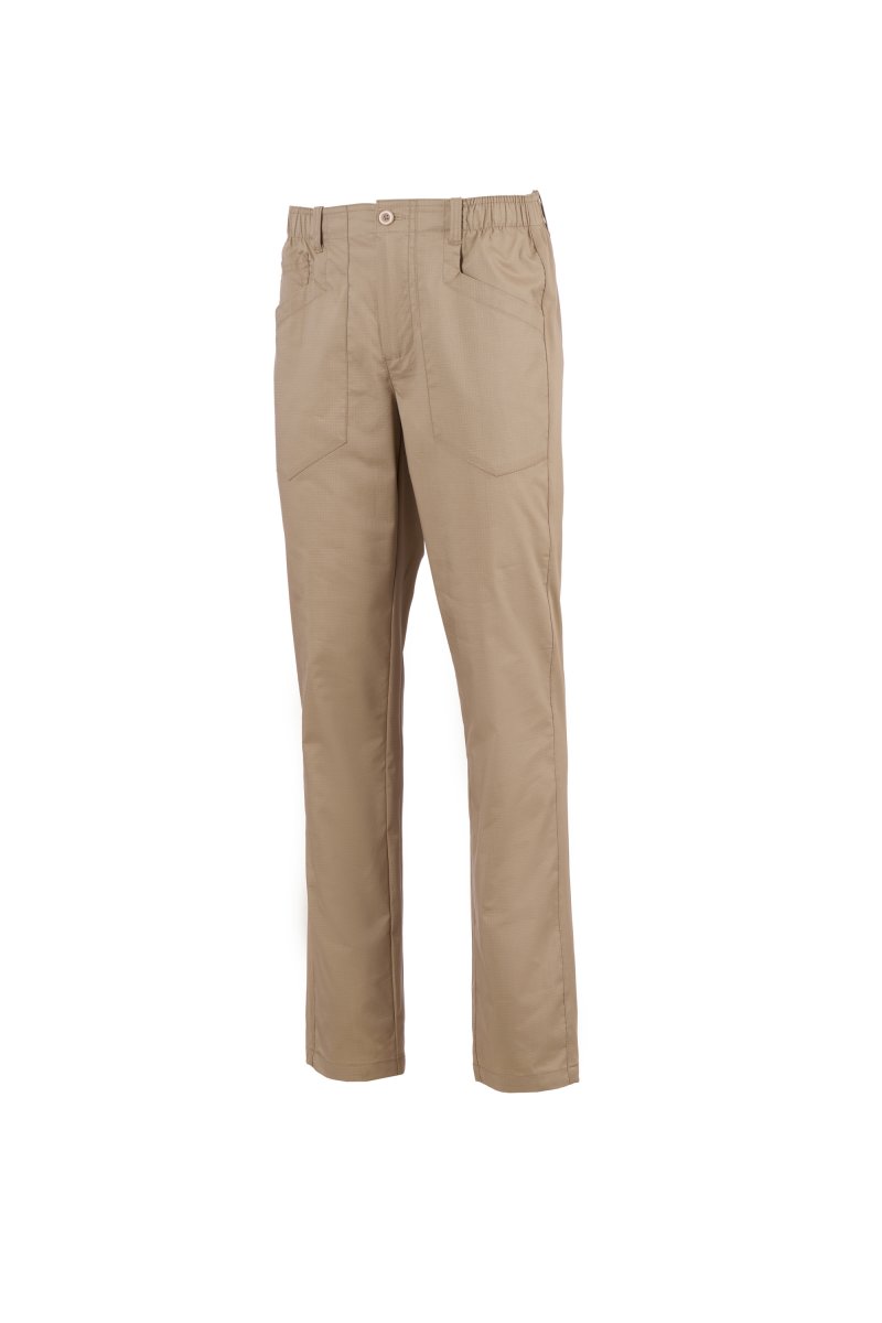 Multipurpose men's trousers made of cotton ripstop and Lycra® T400®, with excellent elastic and breathable properties, with side inserts in comfortable mesh fabric along the entire length of the external leg. Zip and button closure, belt loops, elasticated sweatband on the inside of the waist. On the front it has two shaped pockets and a coin pocket. On the back, a shaped patch pocket. Reinforced stitching in matching colour.