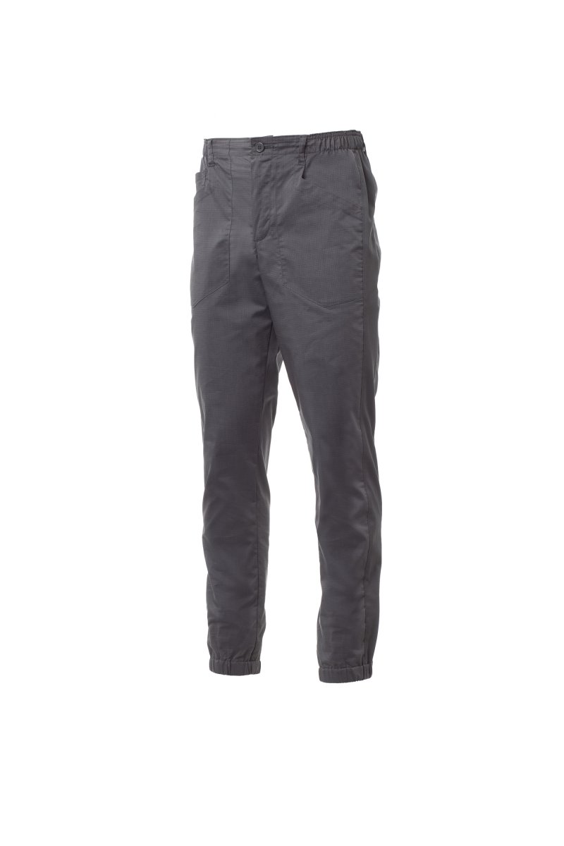 Multipurpose men's trousers made of cotton ripstop and Lycra® T400®, with excellent elastic and breathable properties, with side inserts in comfortable mesh fabric along the entire length of the external leg. Zip and button closure, belt loops, elasticated sweatband on the inside of the waist. On the front it has two shaped pockets and a coin pocket. On the back, a shaped patch pocket. Elastic leg bottom. Reinforced stitching in matching colour.