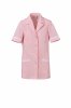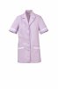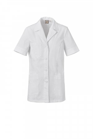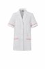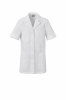 Women's short-sleeved work coat with classic lapel collar, made of cotton poplin, polyester and Lycra® T400®, with excellent elastic and breathable properties. Visible buttoning with 4-hole buttons. Three patch pockets: one on the chest with a pen compartment; two lower ones, one of which with the iconic Payper tone-on-tone embroidered propeller and an internal smartphone holder pocket. Contrasting-coloured fabric inserts on the bottom of the sleeves and lower pockets. Back with central cut and fixed half-belt at waist height, to better follow the silhouette.
