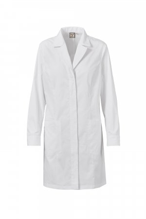 Women's long, fitted work coat with classic lapel collar, made of cotton poplin, polyester and Lycra® T400®, with excellent elastic and breathable properties. Covered buttoning, long sleeves and cuffs closed with snap buttons. Two large patch pockets, one of which with the iconic Payper tone-on-tone embroidered propeller and an internal smartphone holder pocket. Back with a central cut and a slit at the bottom, to facilitate movement.