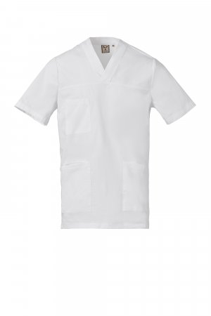 Men's short-sleeved V-neck tunic made of cotton poplin, polyester and Lycra® T400®, with excellent elastic and breathable properties. Three large patch pockets: one on the chest with pen compartment; and two lower ones, one of which with the iconic Payper tone-on-tone embroidered propeller and an internal smartphone holder pocket. Side slits to facilitate movement. Smooth back, for a cleaner look.