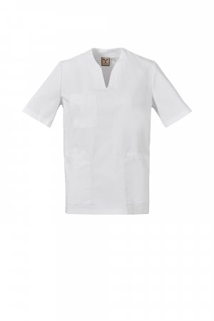 Women's short-sleeved V-neck tunic made of cotton poplin, polyester and Lycra® T400®, with excellent elastic and breathable properties. Three large patch pockets: one on the chest with pen compartment; and two lower ones, one of which with the iconic Payper tone-on-tone embroidered propeller and an internal smartphone holder pocket. Side slits to facilitate movement and pleats to enhance the silhouette.
