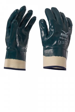 NBR gloves, fully lined, oversleeve, 24 G coated interlock cotton. Features: sturdy, very resistant. Strengths: fit, grip, protection, resistant to liquids, practical. Areas of application: heavy-duty handling, metals, sharp and abrasive materials, oil, grease, dirt, hydrocarbons, lubricants. Minimum saleable unit: 1 dozen (12 pairs).