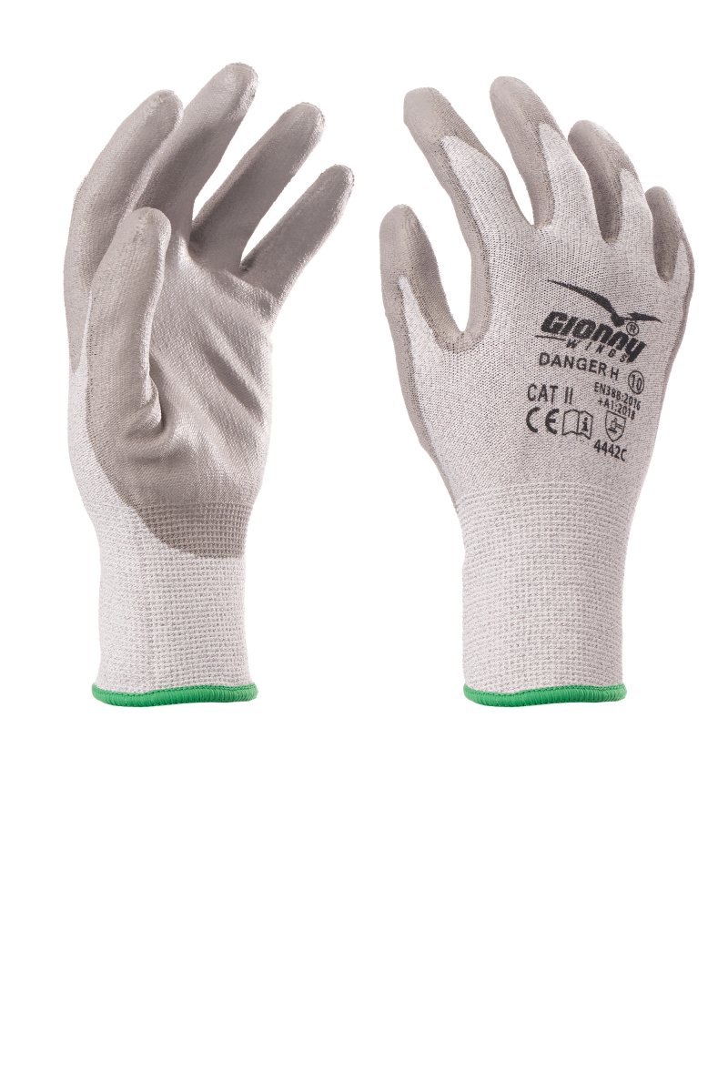 13G polyethylene cut-resistant gloves, ventilated back, knit cuff, polyurethane coated. Features: sturdy. Strengths: cut-resistant, comfort, grip, sensitivity, precision. Areas of application: handling and assembly of cutting, dry or slightly oily items. Minimum saleable unit: 1 dozen (12 pairs). The edge will have a different colour depending on the size.