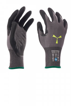 Cut-resistant glove, HPPE 21G yarn, knit cuff, nitrile reinforcement between thumb and forefinger, nitrile microfoam coating on palm, for excellent grip. Touchscreen palm. Features: very comfortable and flexible yarn. Strengths: comfort, flexibility, Level C cut resistance (TDM cut)/A3 (ANSI/ISEA). Areas of application: handling and assembly of sharp objects, ideal in dry environments or with a moderate presence of oils/hydrocarbons. Long-lasting freshness thanks to the Sanitized® sanitising functions. The carton contains 6 display boxes containing 12 pairs each, for a total of 72 pairs. Each pair comes with a head card with hole for hanging display. Minimum saleable unit: 12 pairs (1 dozen). The edge will have a different colour depending on the size.