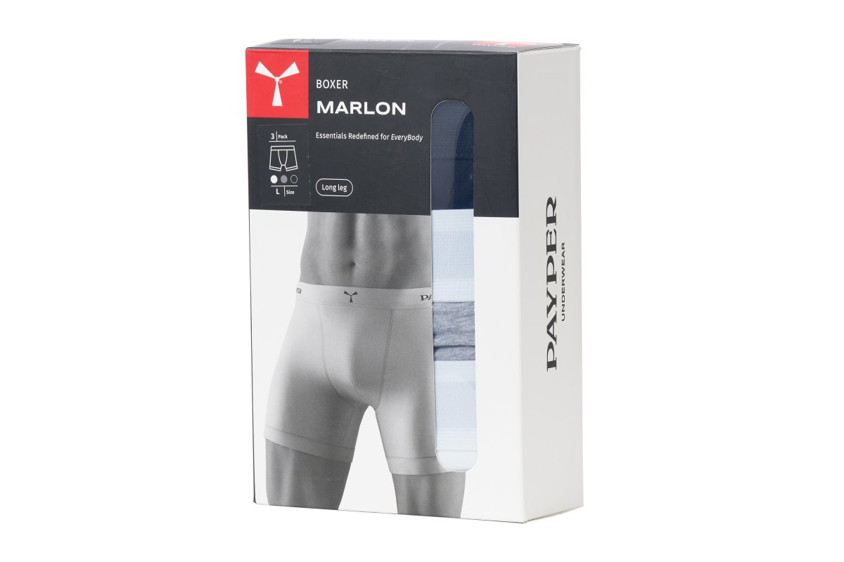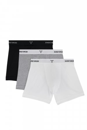 Men's long-leg boxers with a customised elastic waistband, made of stretch cotton. Sold in packs of three, in assorted colours. Minimum saleable unit: 3 pieces (1 pack).