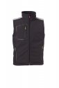 WP 8000 mm H₂O, WVT 5000 g/m² 24h. Chaleco soft-shell de tres capas, con acolchado medio (140 g/m²), de hombre, cierre de cremallera SBS con cursor de metal con sistema de bloqueo semiautomático y tirador personalizado. Bandas retrorreflectantes en hombros y bajo de la espalda. Bolsillo termosellado en el pecho, cerrado con cremallera recubierta. Dos bolsillos laterales, cerrados con cremallera con detalle retrorreflectante. Tiradores fluorescentes. Dos bolsillos interiores, uno contorneado con cremallera a la altura del pecho derecho y otro para tableta con cierre de gancho y bucle. Bajo ajustable con topes personalizados.