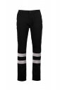 Pantalón de twill elástico de algodón, con bandas retrorreflectantes de categoría 1, trabillas y elástico en la cintura. Cierre con cremallera y botón. Dos bolsillos delanteros de corte clásico, soporte para metro lateral en la pernera derecha. Un bolsillo trasero con tapeta y cierre de gancho y bucle. Costuras de triple aguja.