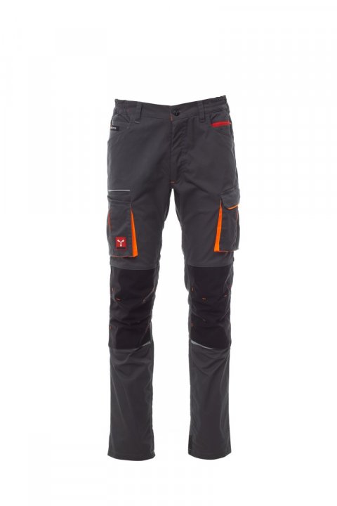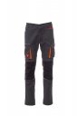 Pantalón unisex de tejido elástico, para todo el año, con elásticos laterales y trabillas en la cintura, cierre con cremallera y botón personalizado. En el delantero tiene dos bolsillos contorneados, un bolsillo pequeño para monedas a la derecha y un bolsillo pequeño de seguridad cerrado con cremallera a la izquierda. En la parte delantera de la pernera izquierda presenta un bolsillo con fuelle, tapeta con cierre de gancho y bucle y soporte para tarjeta de identificación. En la parte delantera de la pernera derecha presenta un bolsillo para el teléfono móvil con borde retrorreflectante y un bolsillo con fuelle. Ambas perneras disponen de bolsillos para rodilleras en Nylon Oxford 500D de tejido en contraste con apertura por la parte inferior y de inserciones retrorreflectantes que indican la apertura. En la parte trasera presenta un bolsillo con tapeta y cierre de gancho y bucle, un bolsillo para el metro (pernera derecha); un bolsillo abierto con dos bandas retrorreflectantes (pernera izquierda); inserciones retrorreflectantes a la altura de la rodilla y cinta talonera de tejido en contraste (ambas perneras). También presenta costuras de triple aguja en la entrepierna y en el interior y exterior de la pernera, y costuras de refuerzo en contraste en distintos puntos. En las tallas (italianas) centrales 48-50-52, el interior de la pernera tiene una longitud normal de 82 cm.