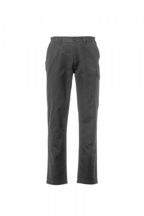 Pantalón de verano, en ripstop elástico de algodón, con trabillas y elástico en la cintura. Cierre con cremallera y botón. Bolsillos delanteros de corte clásico; un bolsillo pequeño para monedas y bolsillo para metro lateral en la pernera derecha. Bolsillo lateral izquierdo con tapeta de cierre LOCK SYSTEM. Dos bolsillos traseros, uno de los cuales con tapeta y cierre de gancho y bucle. Costuras de triple aguja.